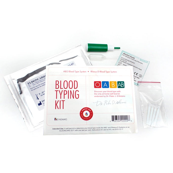 This is an easy-to-use home test complete with everything you need to blood group one person. We even supply the alcohol swab. All you have to do is supply the blood! Will determine both ABO and Rh D (Rhesus) blood groups. Each test kit will blood group one person. FDA-approved for educational use. Results can be read within 2 minutes.
